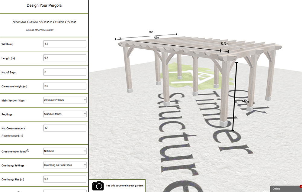 You'll find the Online Designer at the top of each product page. Every designer has the basic dimension controls, and that's a great place to start your bespoke design. You can adjust the width, length, height and clearance, and even shape on some products to create a structure that'll fit flush in your space.